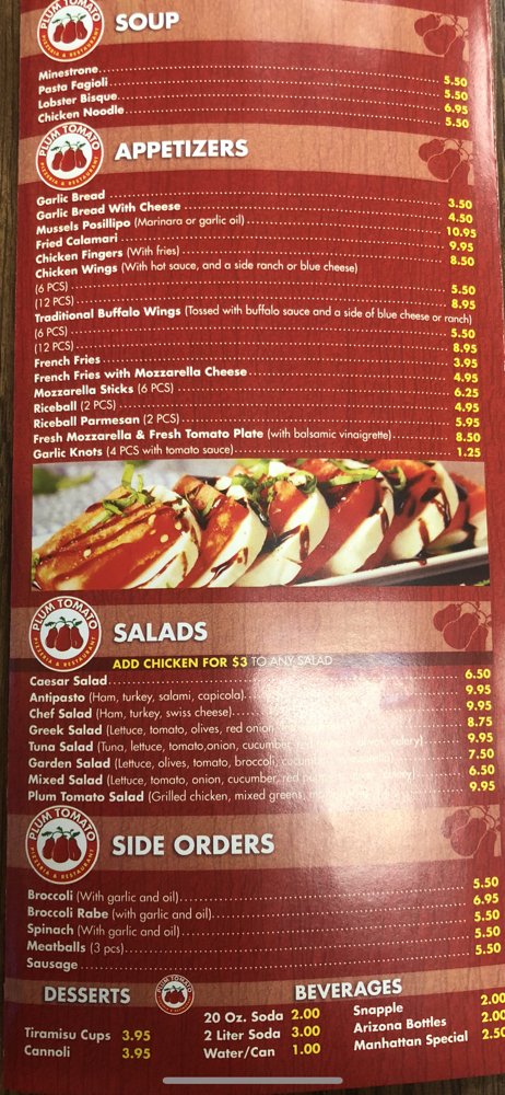 The restaurant provides various amenities, including delivery, takeout, and catering services, making it a convenient choice for all occasions. With options for vegetarians and a family-friendly atmosphere, Plum Tomato caters to a diverse range of tastes.