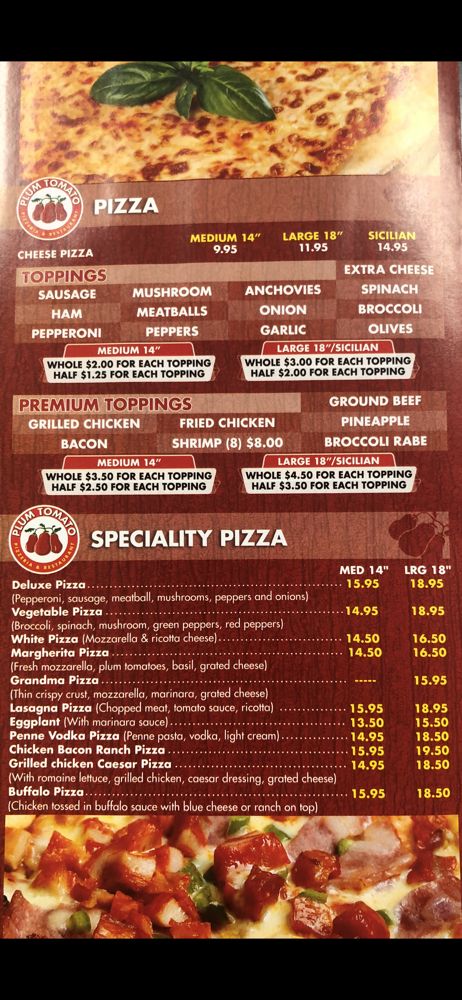 Overall, Plum Tomato stands out for its consistent quality, efficient service, and mouthwatering dishes. Whether you're in the mood for a classic cheese pizza or a unique Chicken Francese Pizza, this restaurant is a must-visit for pizza lovers in Rahway.